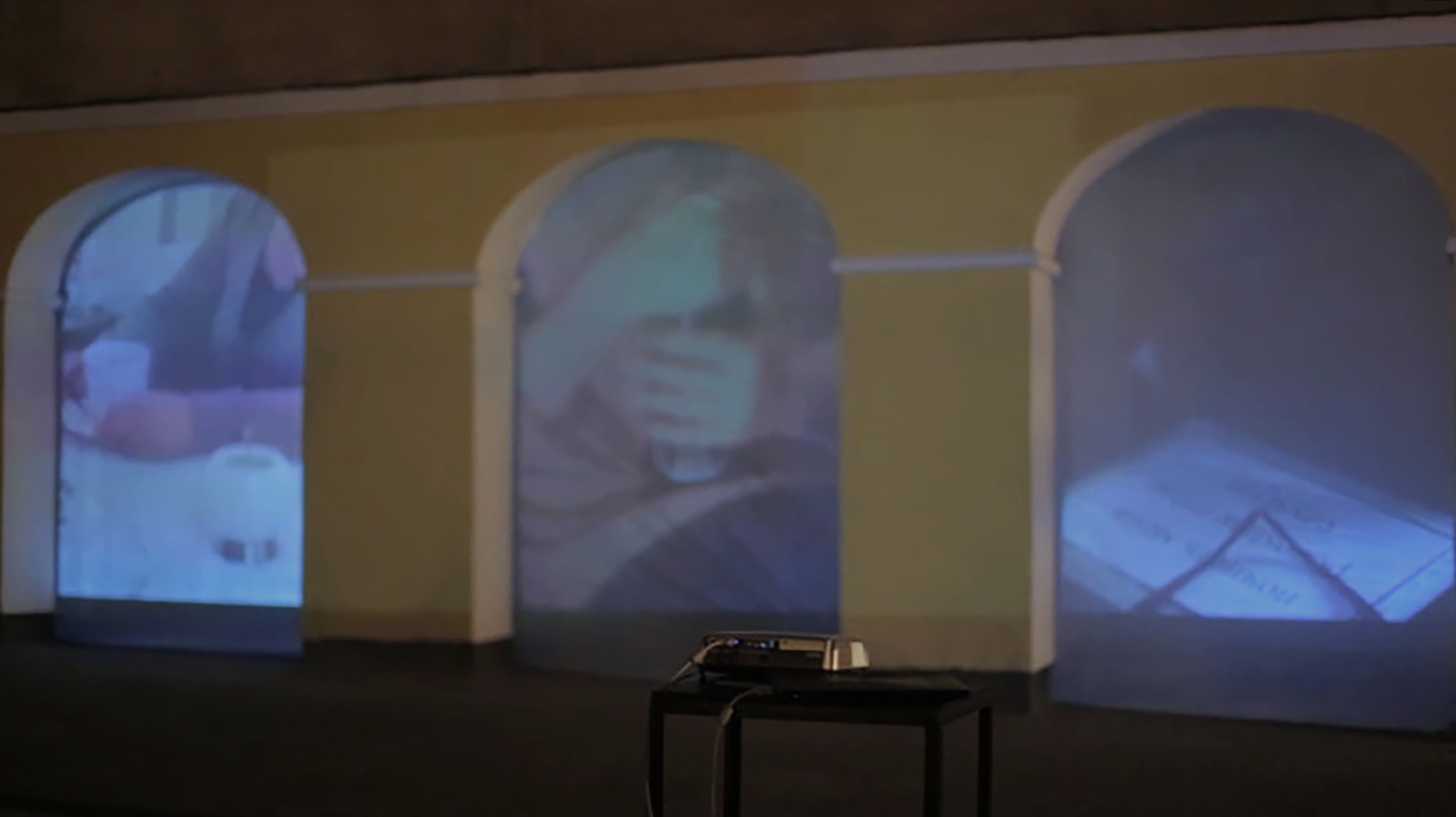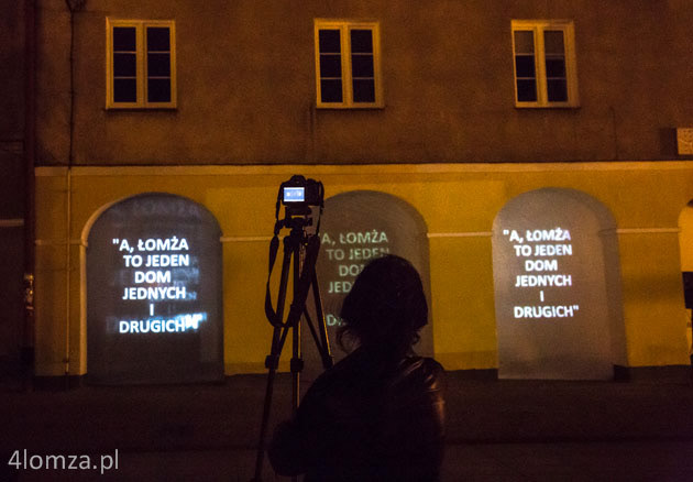 The work presented here is a visualization of a public projection that took place on June 14, 2014, in Łomża. The location was the arcades of tenement houses in the Old Market Square. "CZE CZE" is a project that explores the mutual perceptions of communities living in a shared urban space yet differing culturally, religiously, and ethnically. This project was inspired by the tensions that arose in Łomża between a group of residents and the Chechen refugees residing there. A campaign of hostility from groups hostile to "outsiders," reinforced by the actions of local politicians, resulted in the closure of the refugee center operating there in 2011. However, many newcomers from the Caucasus region still live in Łomża.